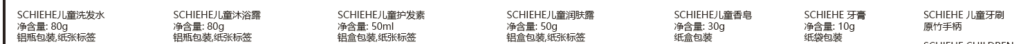 这套产品包括儿童洗发水、护发素、沐浴露、润肤露、儿童香皂、牙膏和牙刷。全套产品外形可爱,充满童趣,礼盒装更方便旅途收纳。